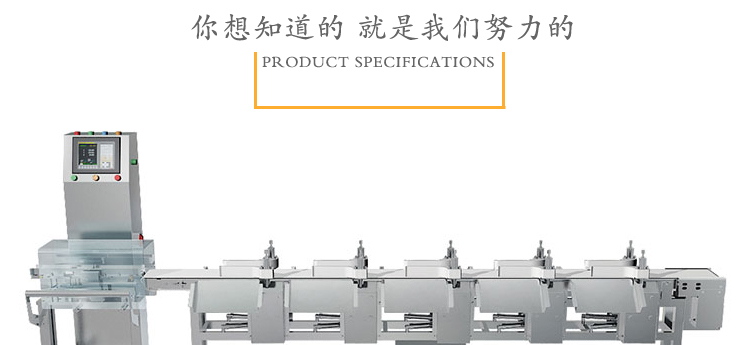 產(chǎn)品主要作用:產(chǎn)品在線重量標(biāo)準(zhǔn)化檢測的關(guān)鍵設(shè)備,按照重量大小、重量等級分組的關(guān)鍵設(shè)備,一體化自動化設(shè)備;