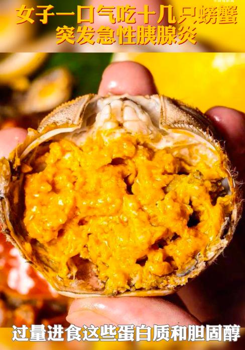 同濟醫(yī)院醫(yī)生表示,過量食用螃蟹這種高蛋白、高脂肪飲食非常同意誘發(fā)急性胰腺炎。